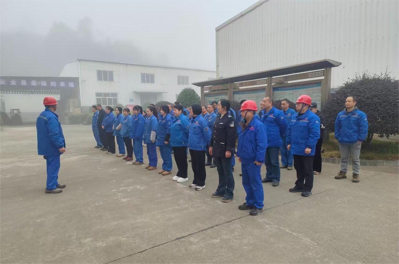全体人员列队整齐,精神饱满。安环部副总于队伍前整队发言,字字铿锵,强调安全是企业的生命线,是每个人肩上最重的责任。